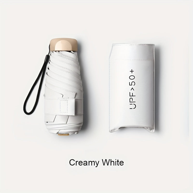 Compact 6-Rib Mini Folding Umbrella - Lightweight Durable Aluminum Alloy Handle & Frame, Manual Open/Close, Stylish Portable Design for Sun & Rain, Available in Pink, Blue, White, Gray - Cute Rain Gear with PVC Umbrella
