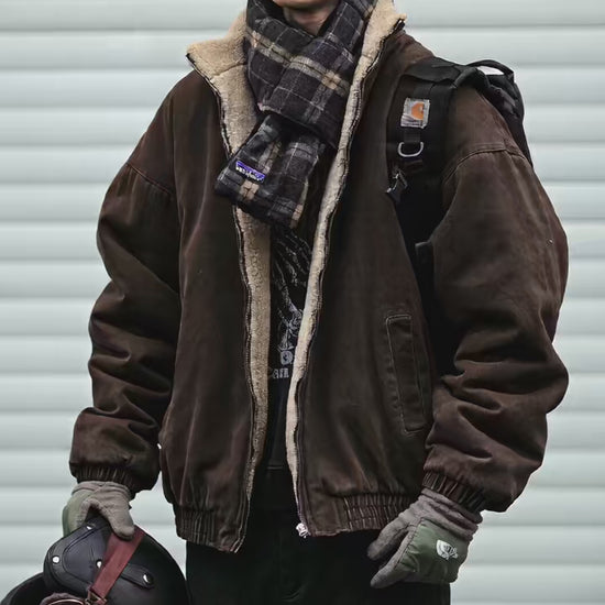 This vintage-inspired fleece bomber jacket offers a warm, structured layer suited for colder seasons. Designed for everyday wear, it combines a relaxed fit with durable fabrics for dependable comfort.